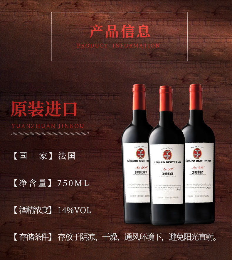 商品名称:法国进口红酒Gérard Bertrand原装原瓶红葡萄酒 14度 750ml