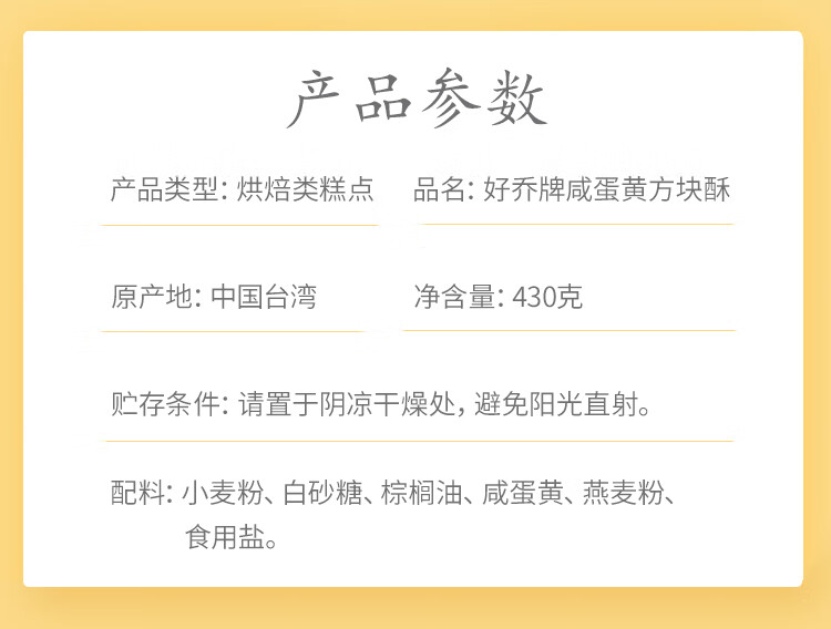 商品名称:500g/罐 好乔牌台湾好味道全麦方块酥