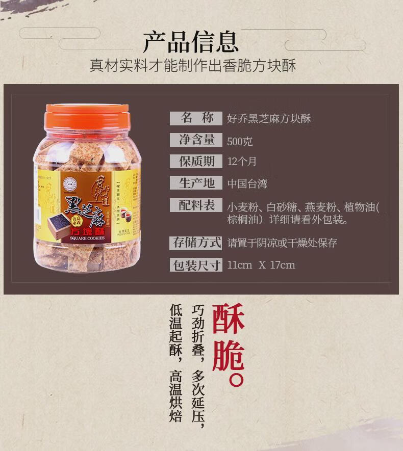 商品名称:500g/罐 好乔牌台湾好味道黑芝麻方块酥