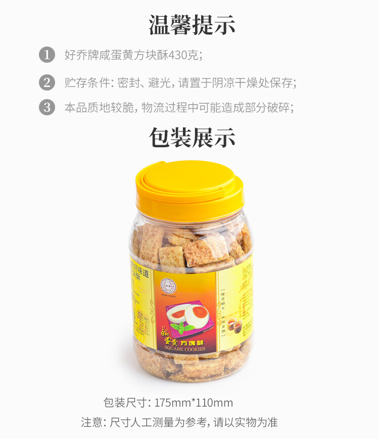 商品名称:430g/罐 好乔牌台湾好味道咸蛋黄方块酥