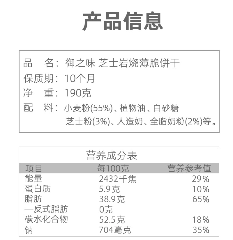 商品名称:190g/盒 御之味芝士岩烧薄脆饼干